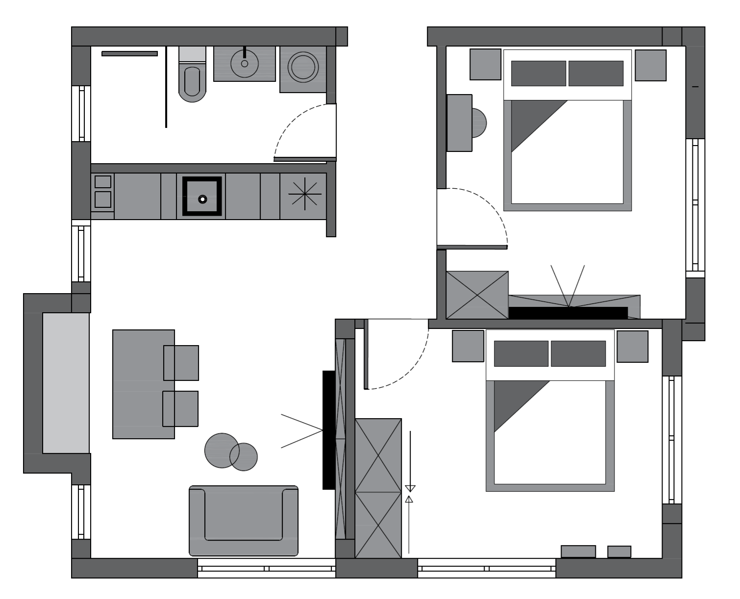 This project explores the transformation of a compact apartment into a coherent and expressive living environment, where spatial efficiency and atmosphere are treated as equally important design parameters. The interior is conceived as a continuous sequence of spaces, defined not by physical separation but by subtle zoning, material transitions, and light.