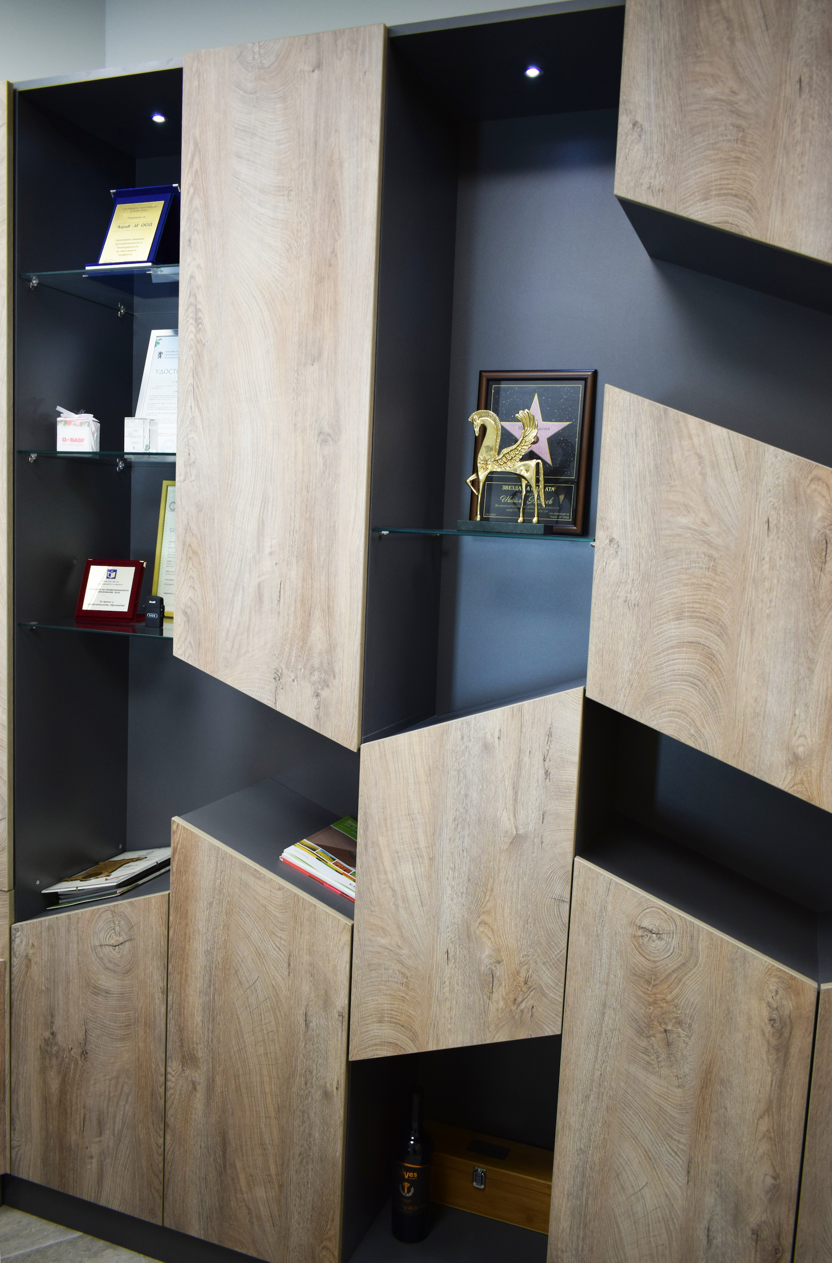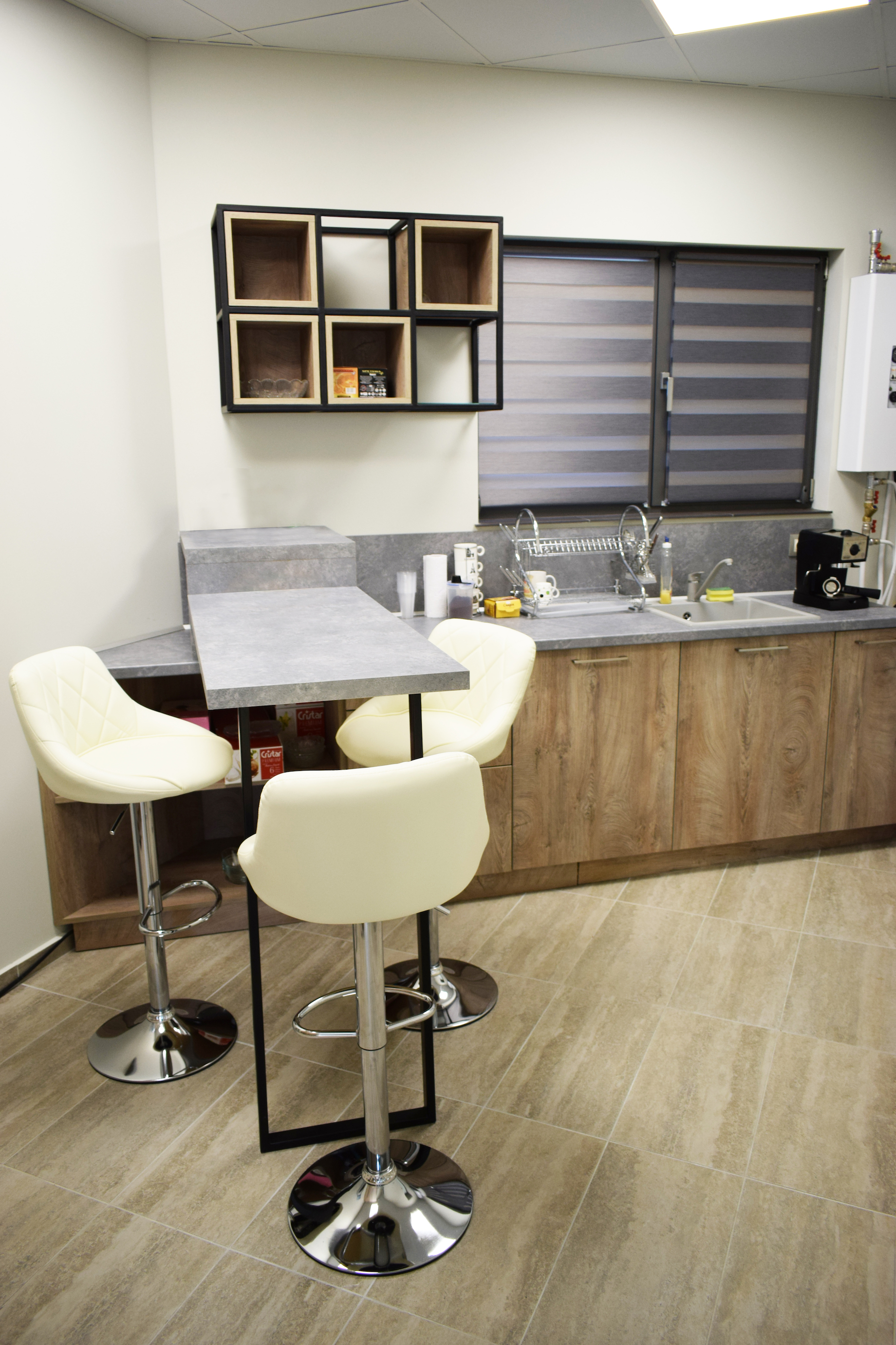 Проекта включва: фасада; входно антре със скрит умивалник за персонала; приемна (заседателна) зала с работно място за секретарка; офис управител; кухня перонал; стая персонал; санитарни помещения - 2 бр.