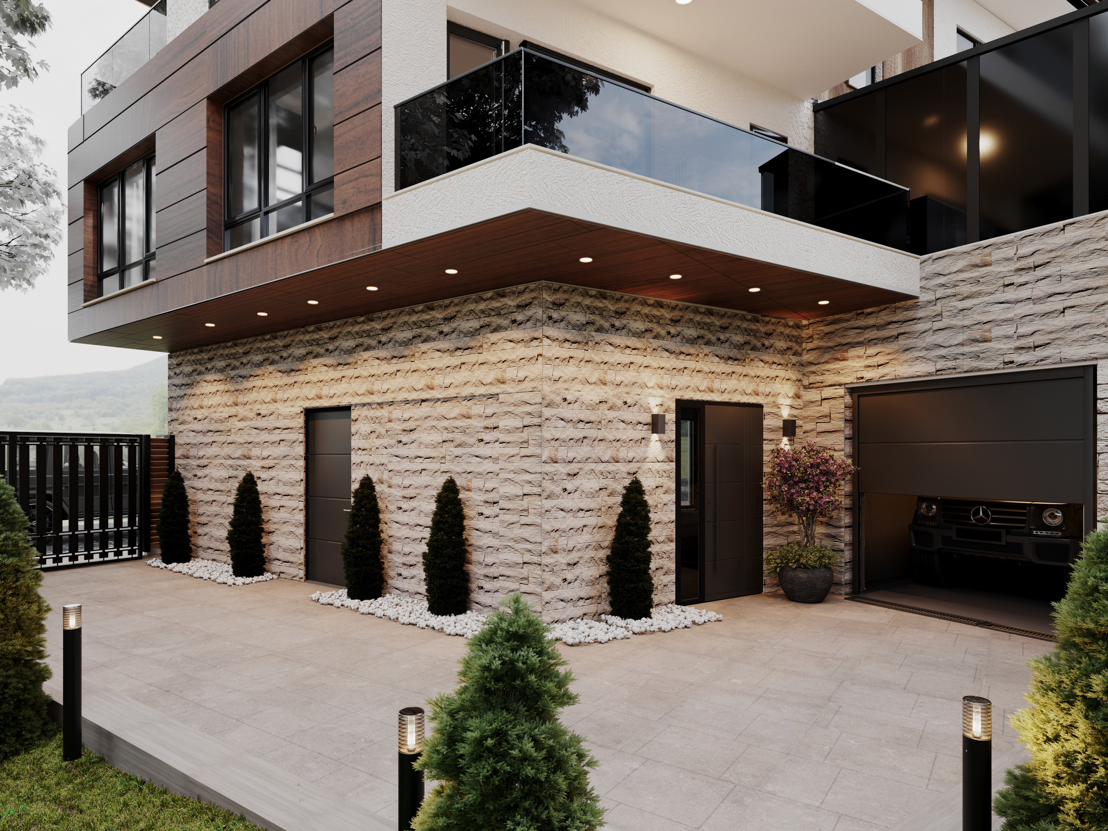 House Devin е еднофамилна къща, разположена в полите на Родопите. Проектът съчетава функционална архитектура, естествени материали и просторни обеми, които подчертават светлината и гледките към природата. Фасадите са разработени с комбинация от камък, дтрво и топли неутрални тонове, създавайки усещане за уют и елегантност. Проектът включва балансирана композиция между съвременна визия и традиционни родопки препратки.