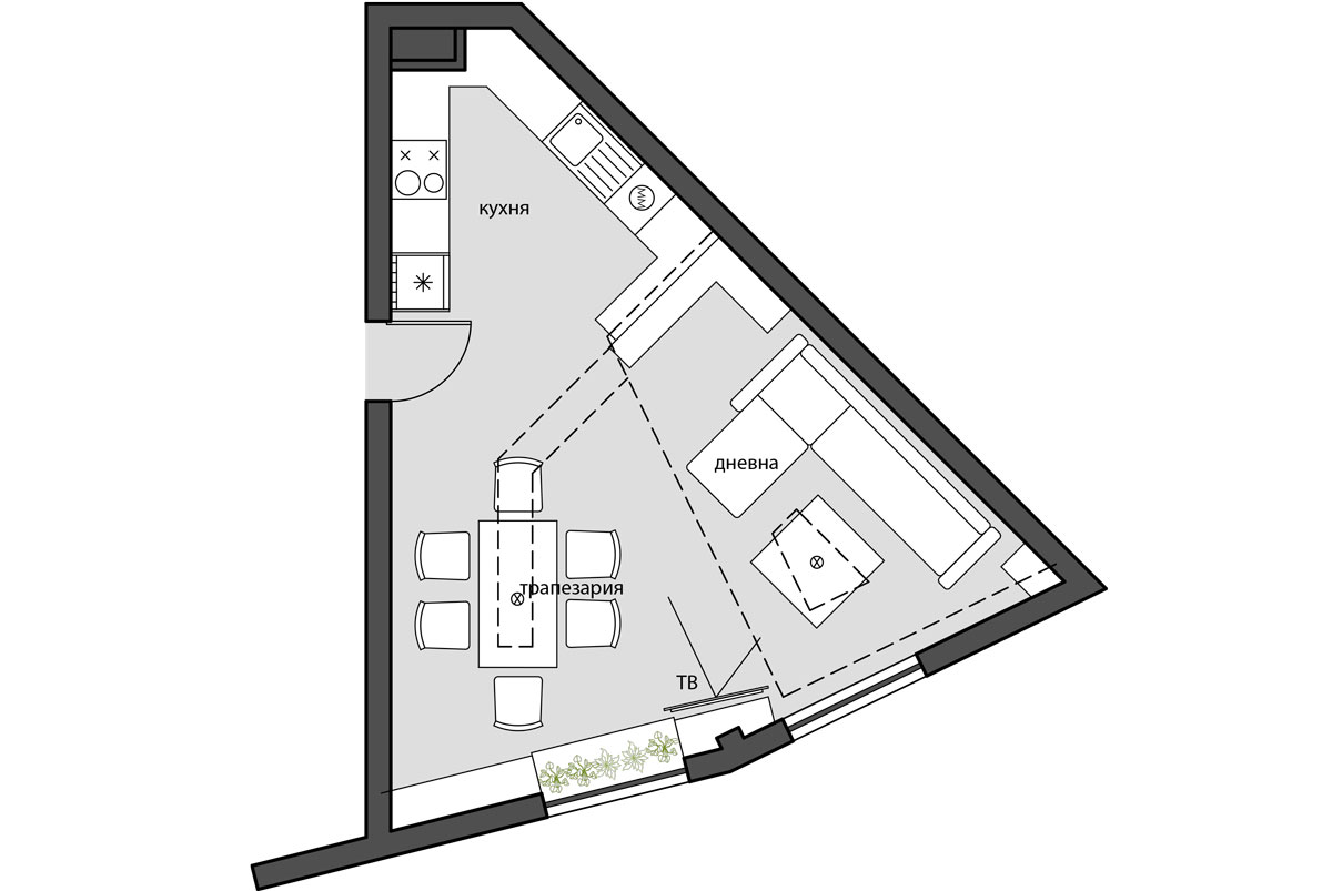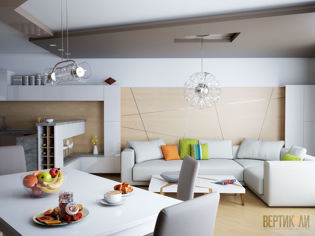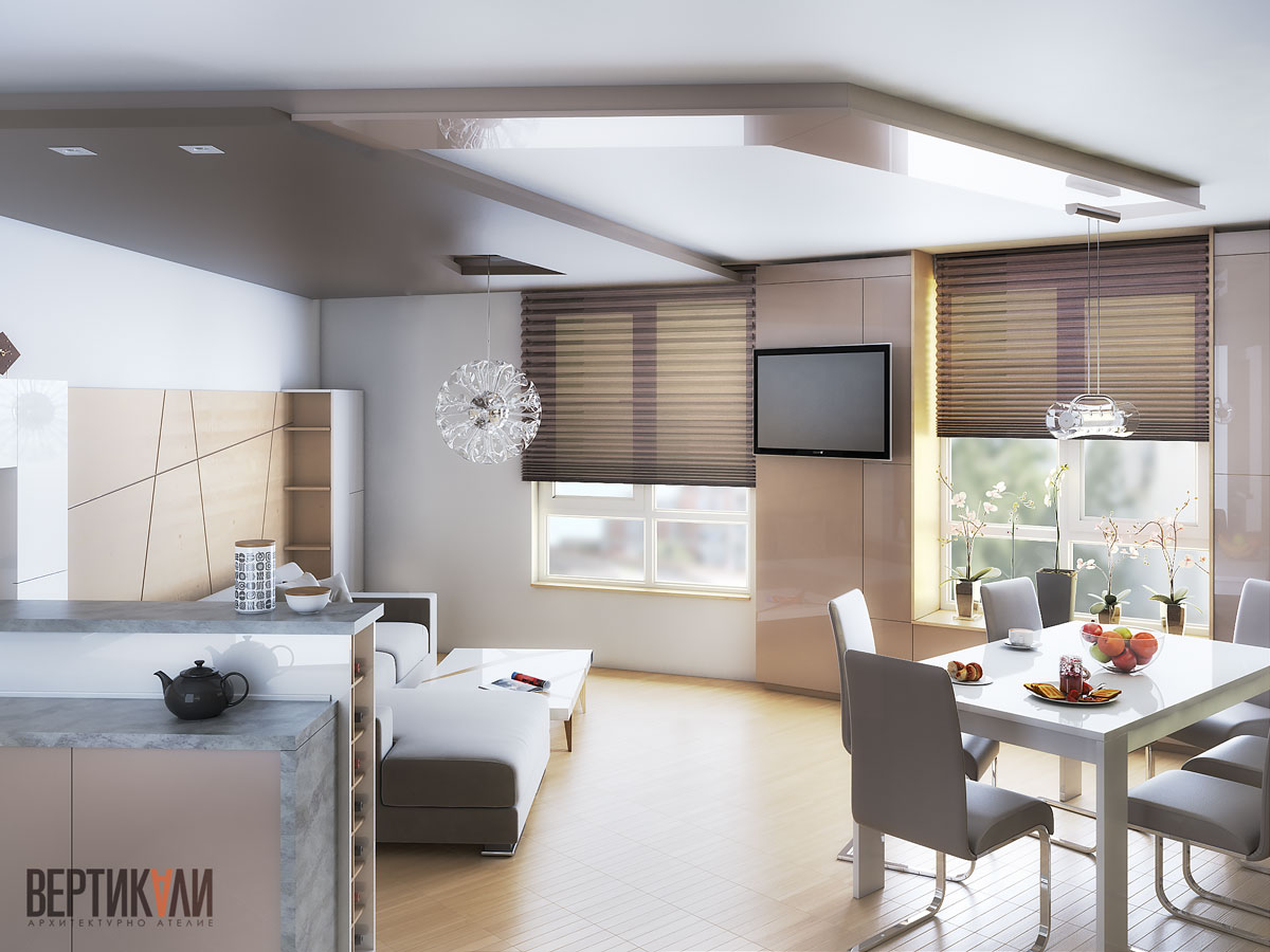 Идеен проект за пространство - кухня, дневна и трапезария в град Бургас.
