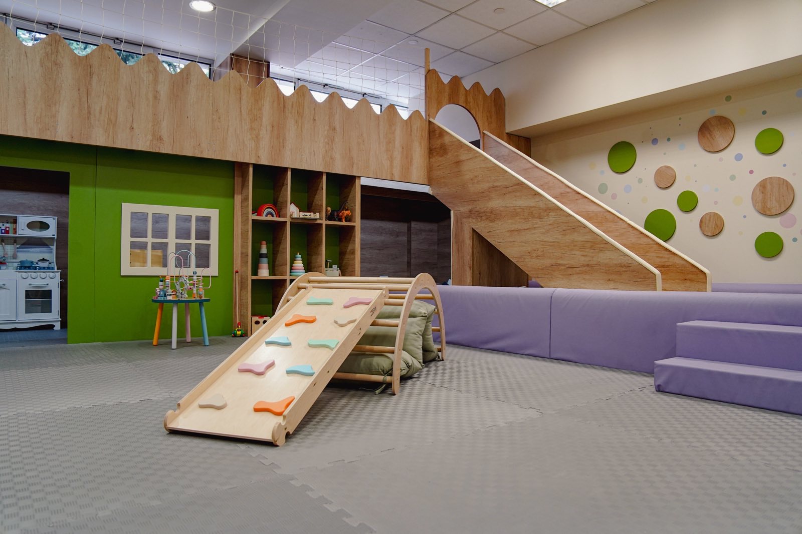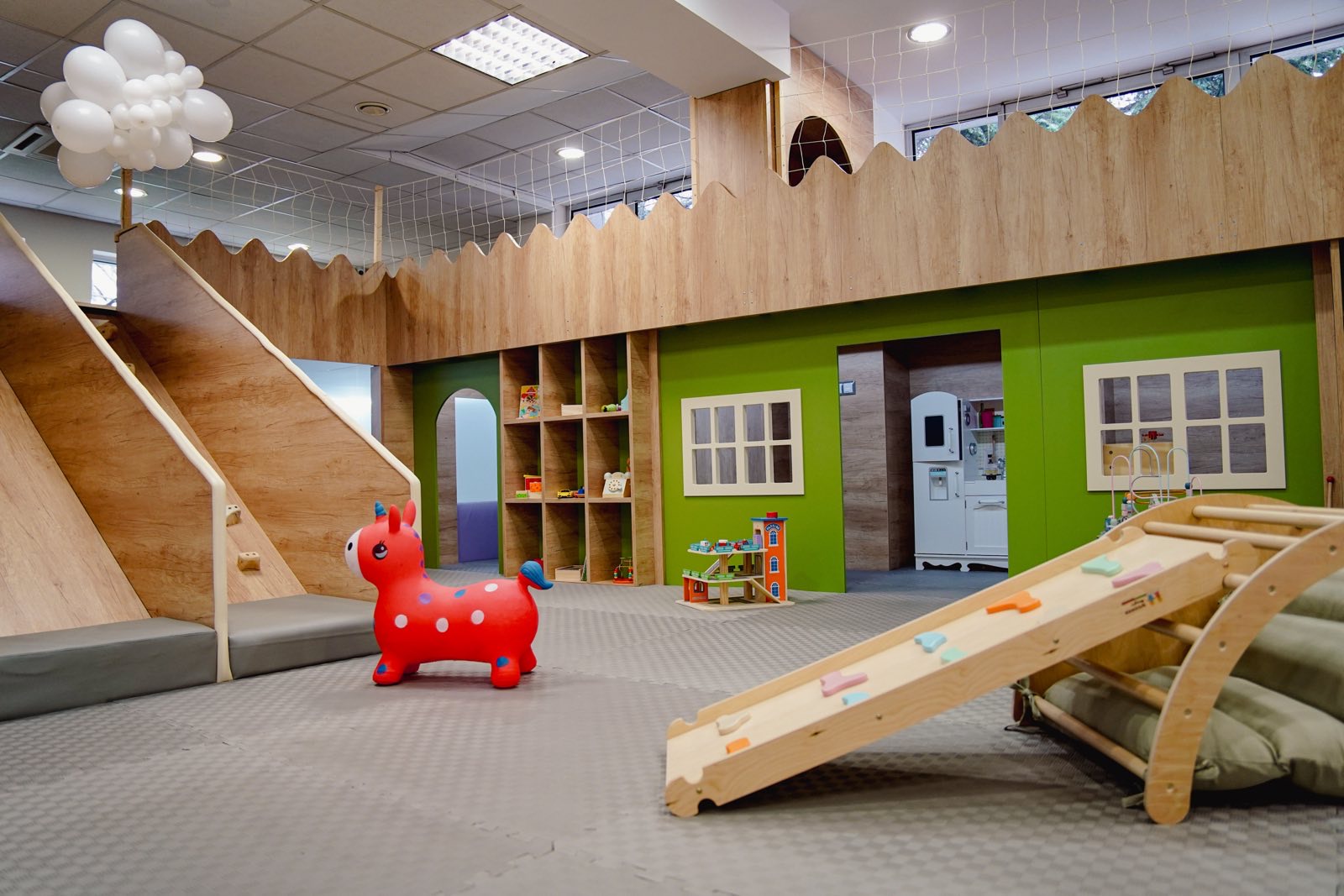 Този детски център е реализиран от нашия екип с внимание към детайла, функционалността и нуждите на децата. Пространството съчетава модерен дизайн, уютна атмосфера и безопасна среда, която стимулира играта, въображението и развитието на най-малките.