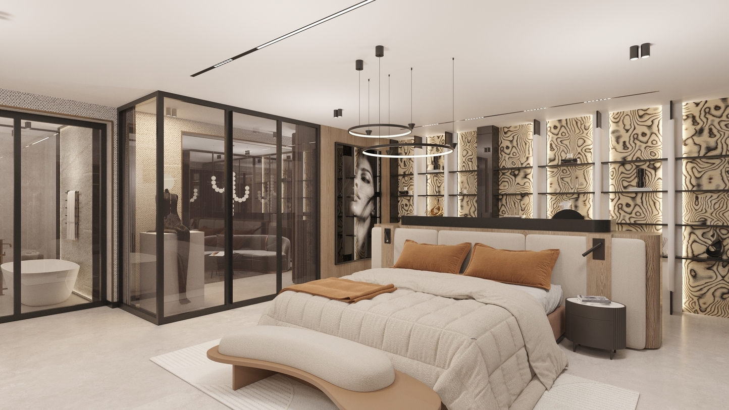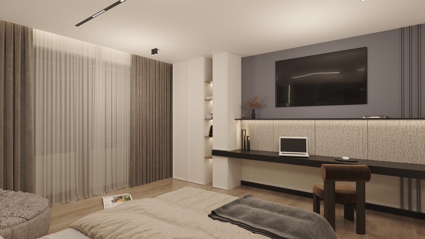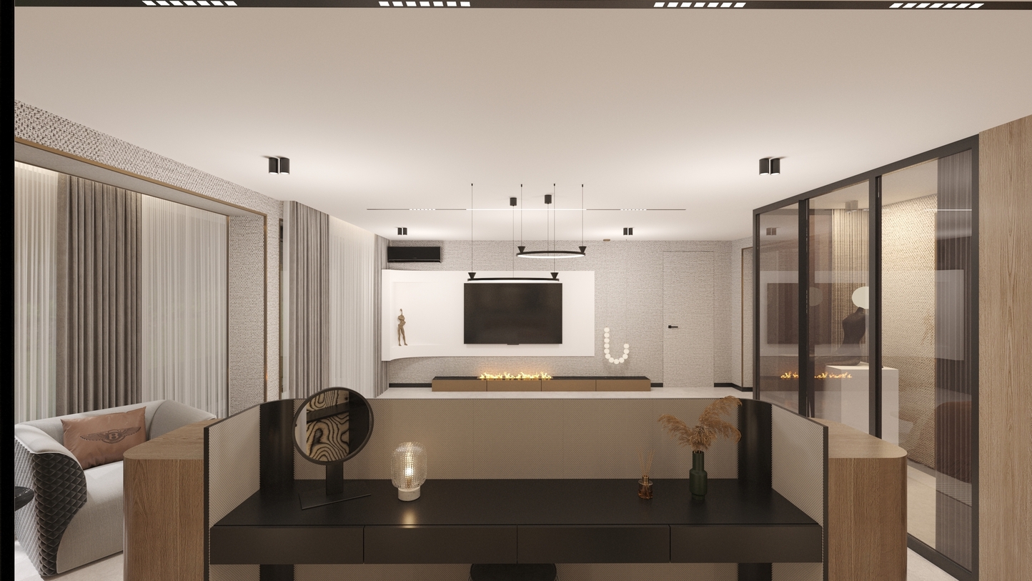The project is an exploration of the balance between modern minimalism and a sense of timeless comfort. The concept is built around the idea of “Quiet Luxury”—a space that does not impose its presence but envelops the inhabitant in high-quality materials and a serene visual environment. The philosophy relies on the sensory experience, where luxury is discovered in precise proportions and the purity of lines.