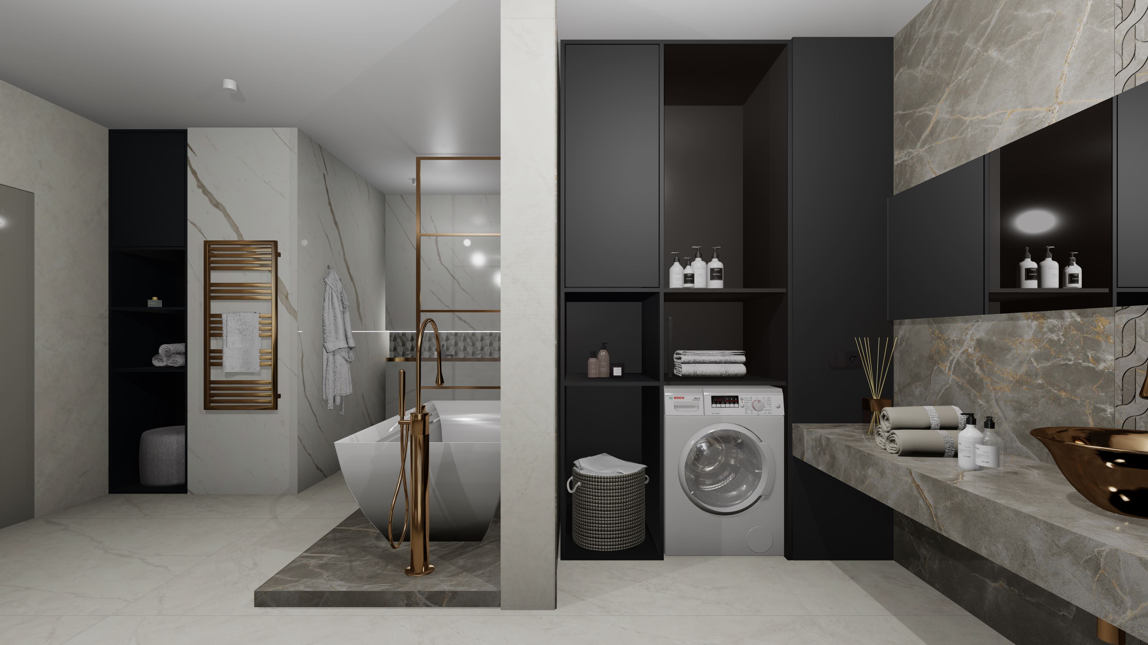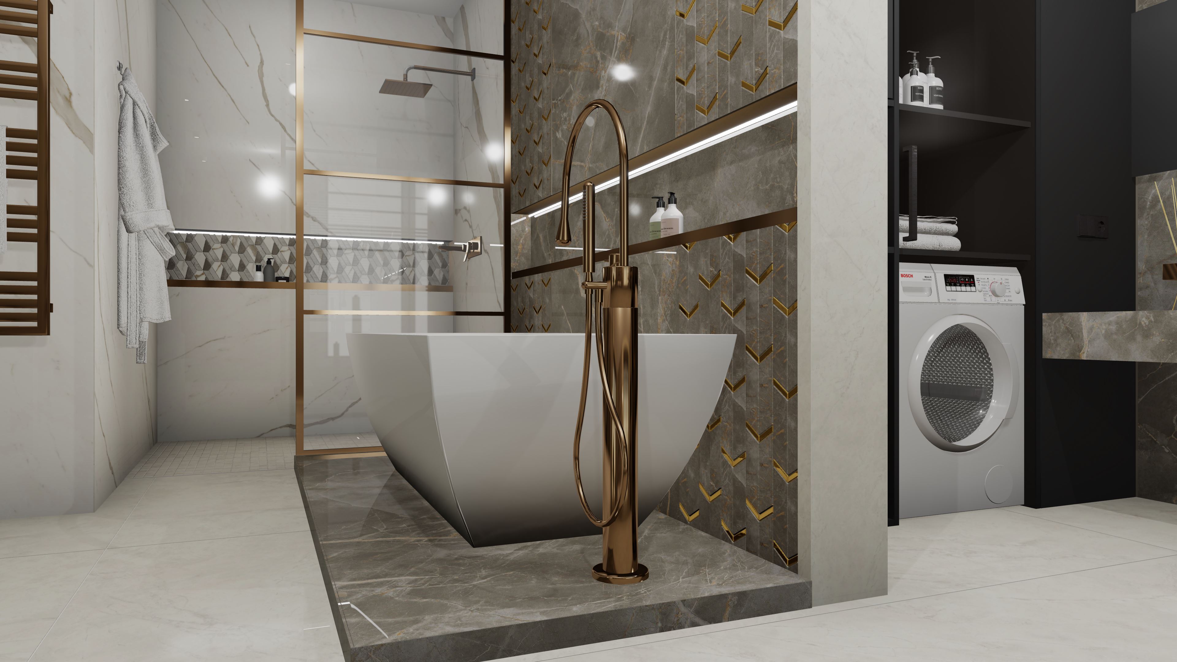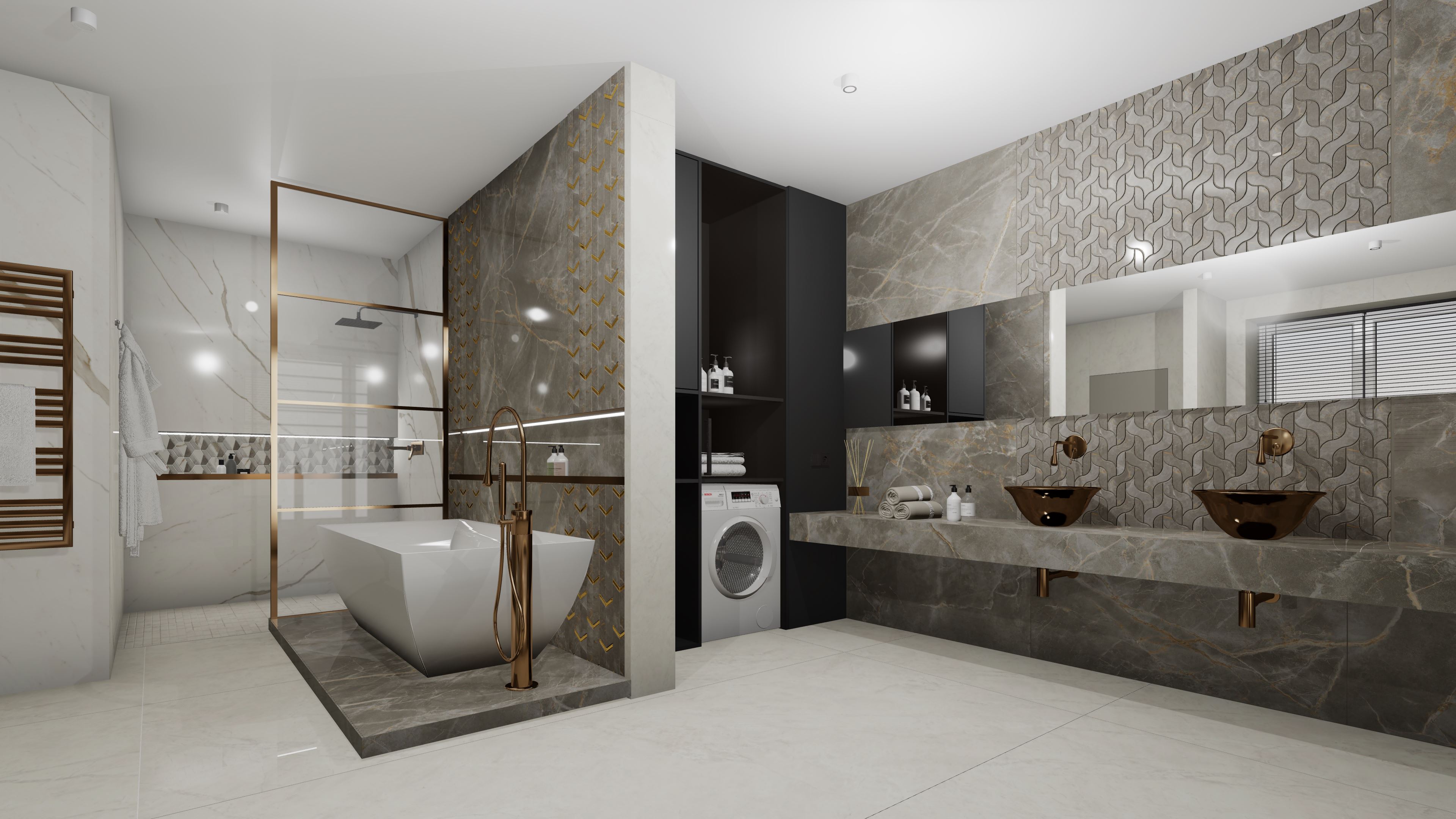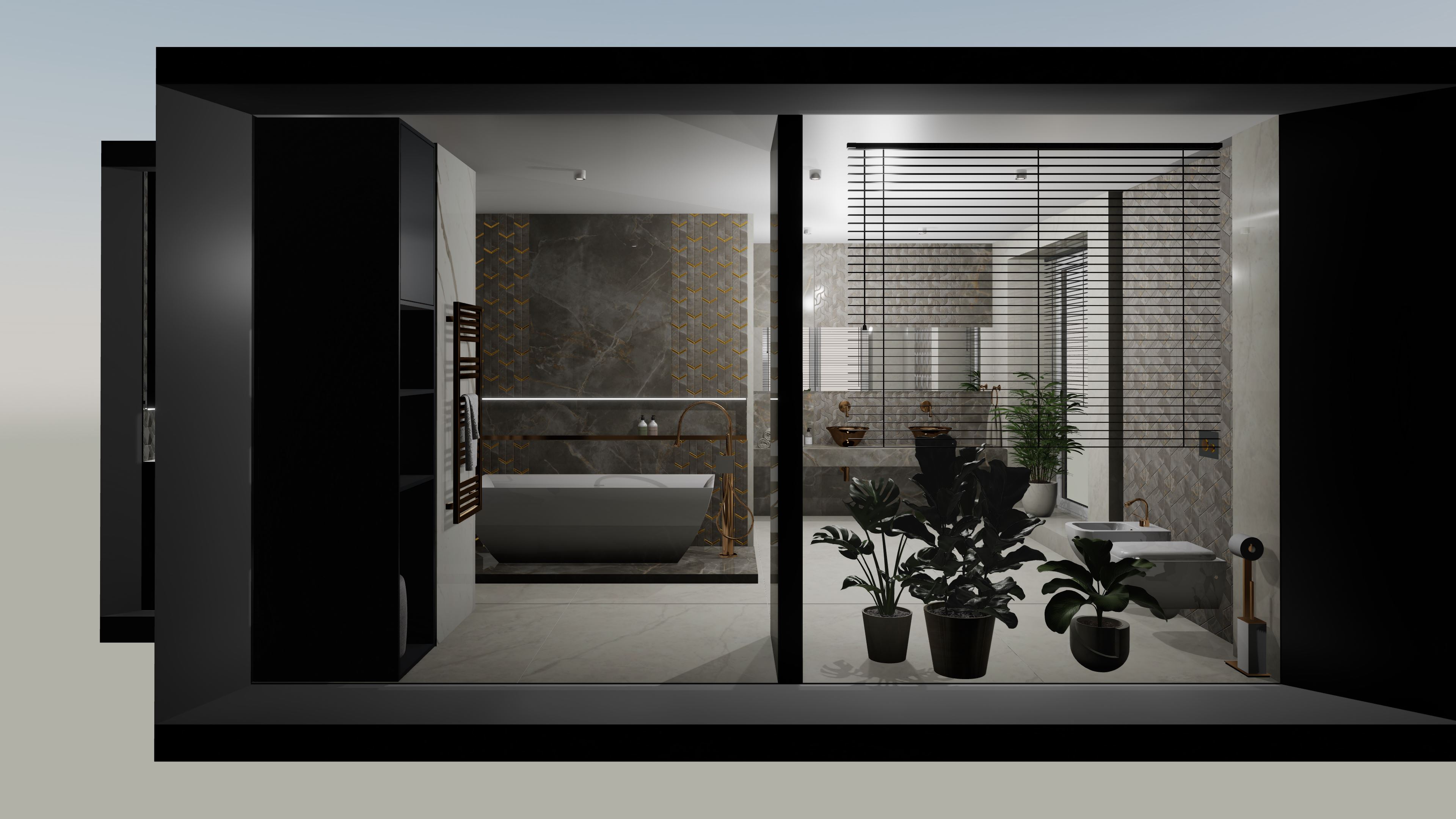 Този проект представлява пълна 3D визуализация на модерна баня, използваща реални материали от производители.Проектирах пространството с плочки с голям формат. Визуализацията следва точни размери, реални продукти и професионални стандарти за интериорен дизайн.