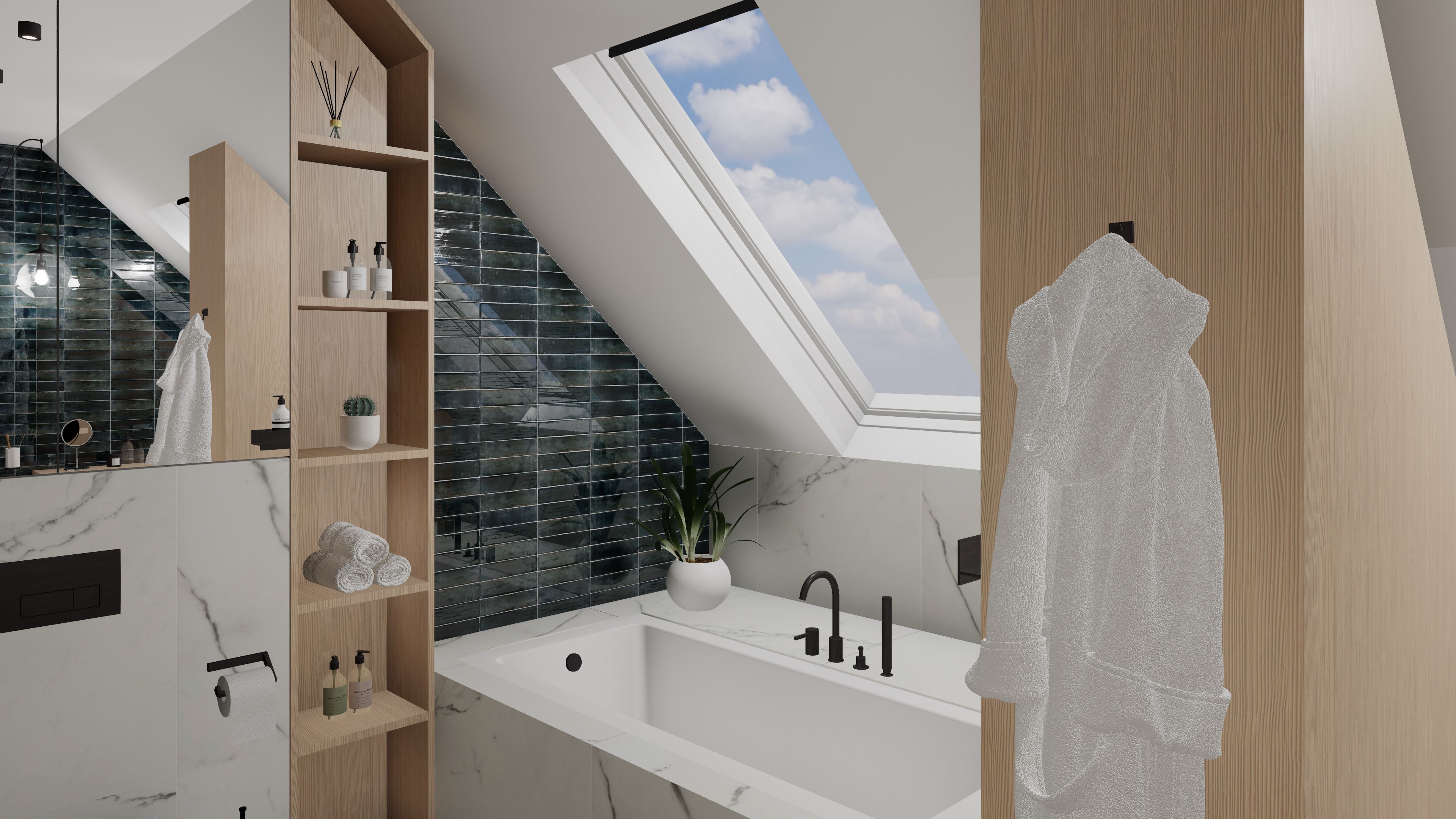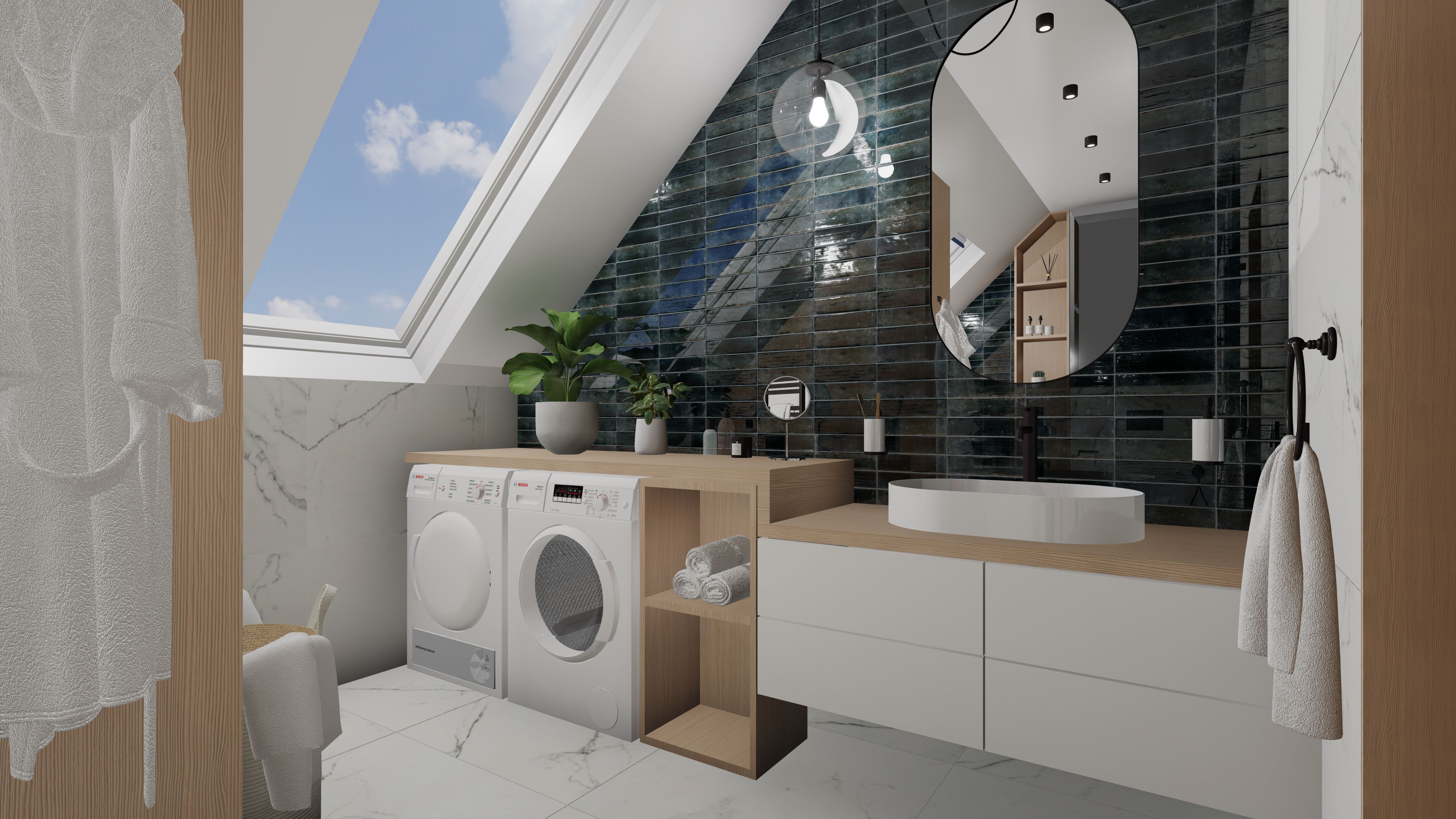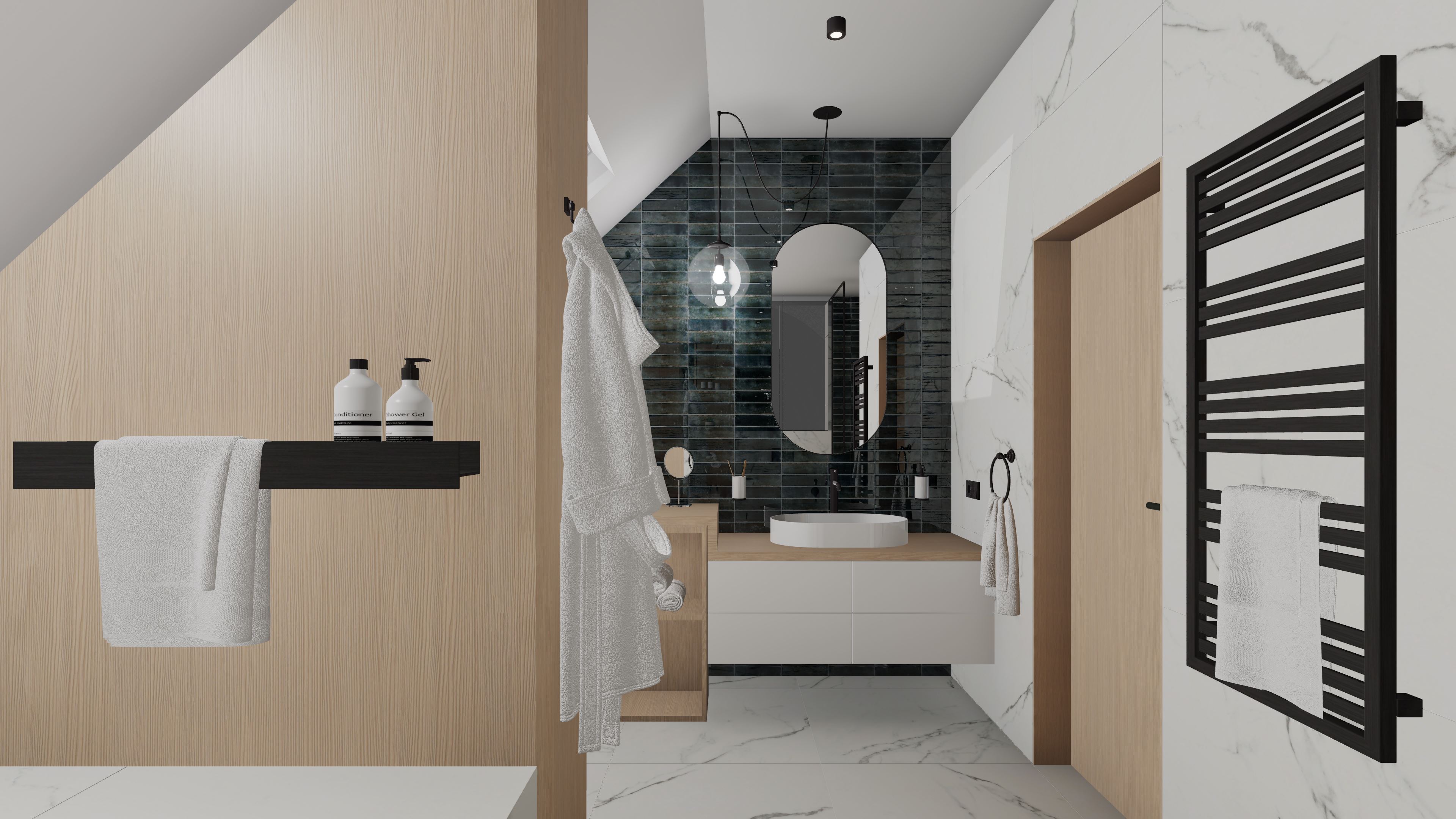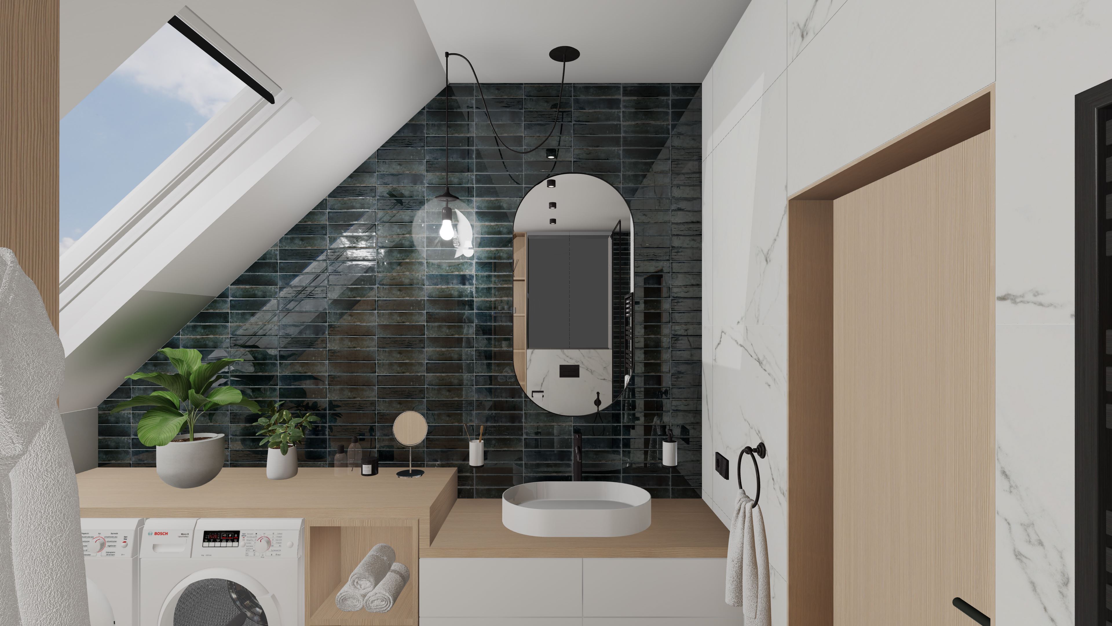Този проект е 3D визуализация на модерна баня в стил лофт.