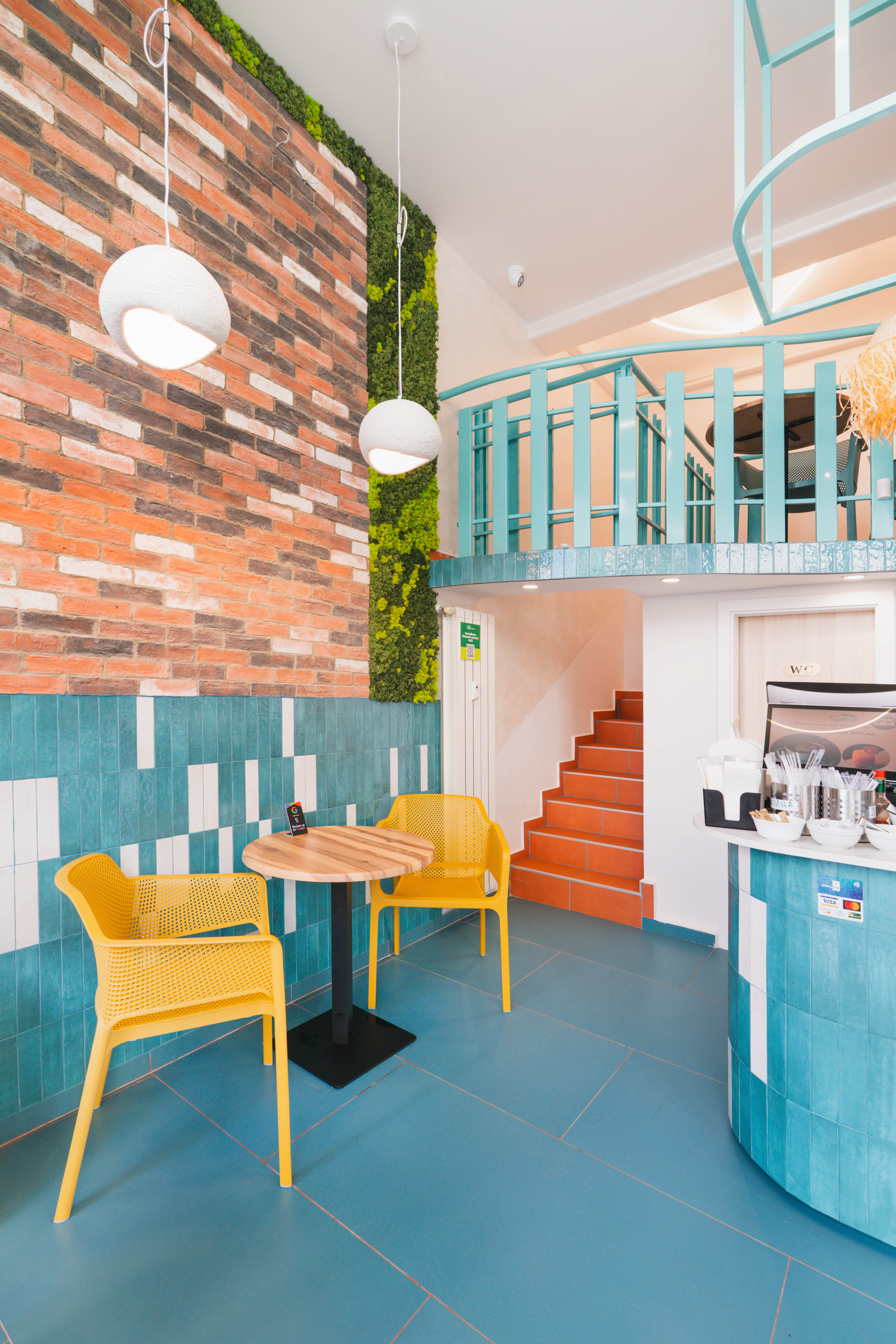 Помещение на два етажа с обща квадратура от 55 кв. м, превърнахме в цветна еуфория! Основното вдъхновение в този проект дойде от думата "море" и тюркоазените нюанси на водата, в комбинация с леки жълти и оранжеви акценти, напомнящи на галещите лъчи на слънцето!