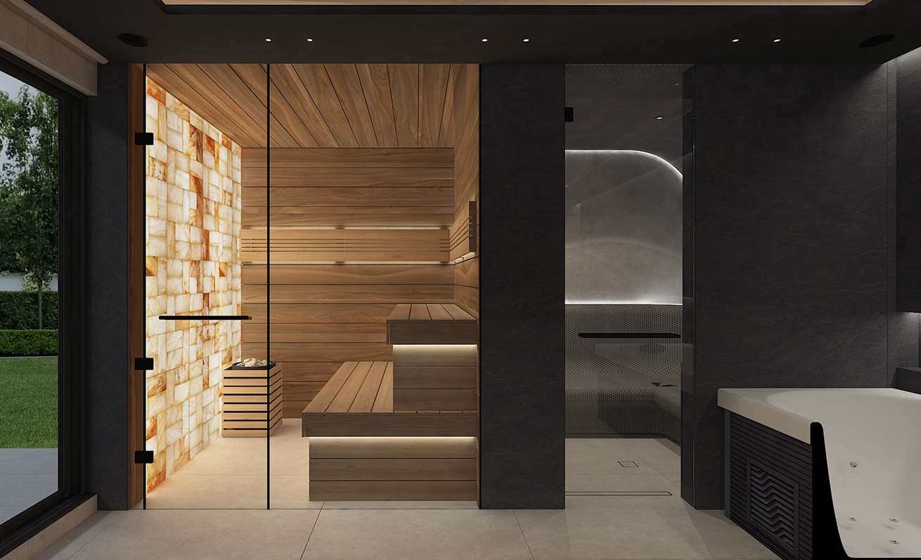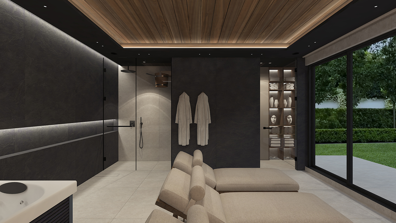 Проектиране на домашен СПА център със Сауна, Парна баня и ледена вана за възстановяване. Минималистичен дизайн с идея към едентичност, функционалност и начин за релаксиращи моменти със семейство и приятели.