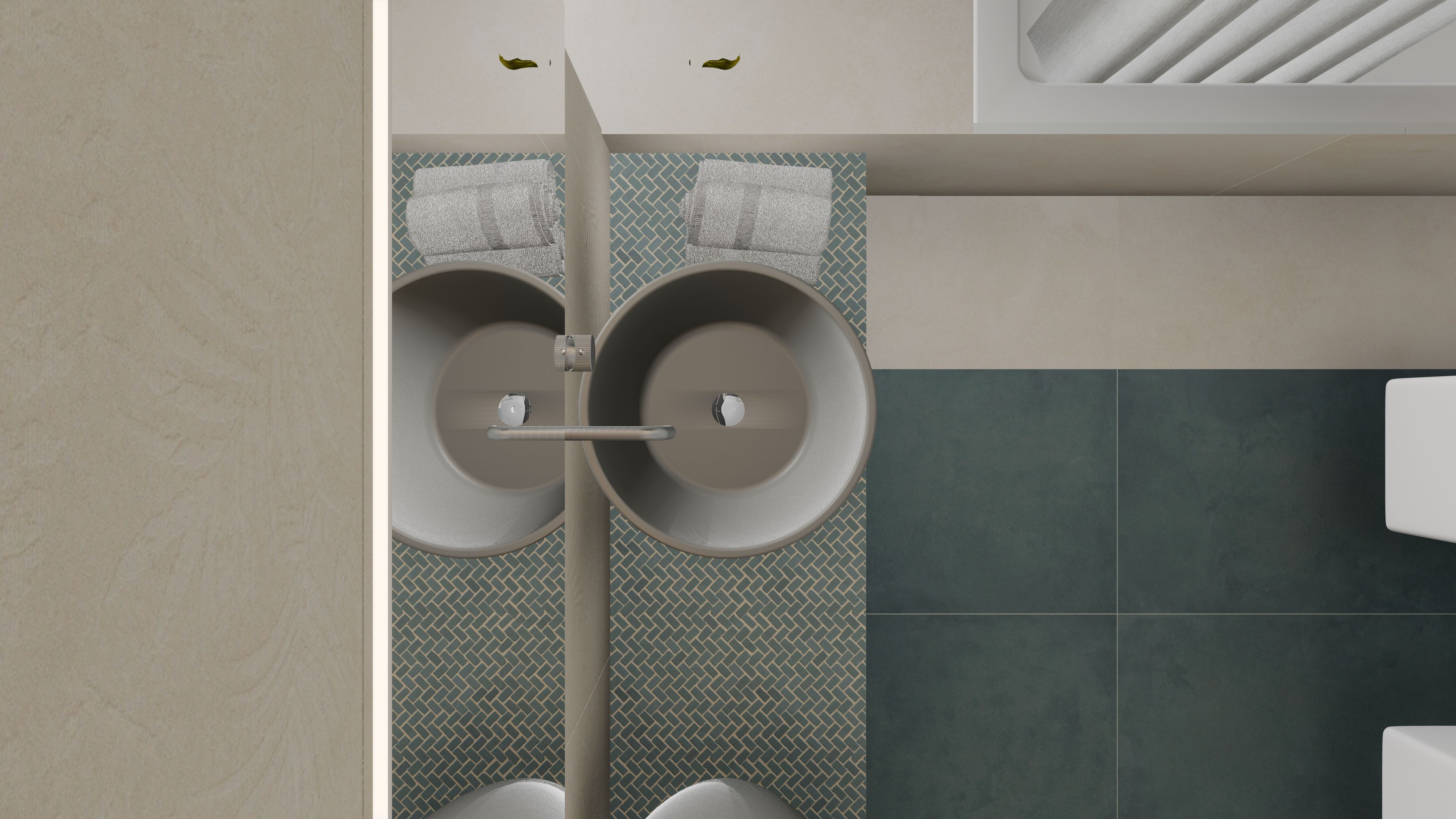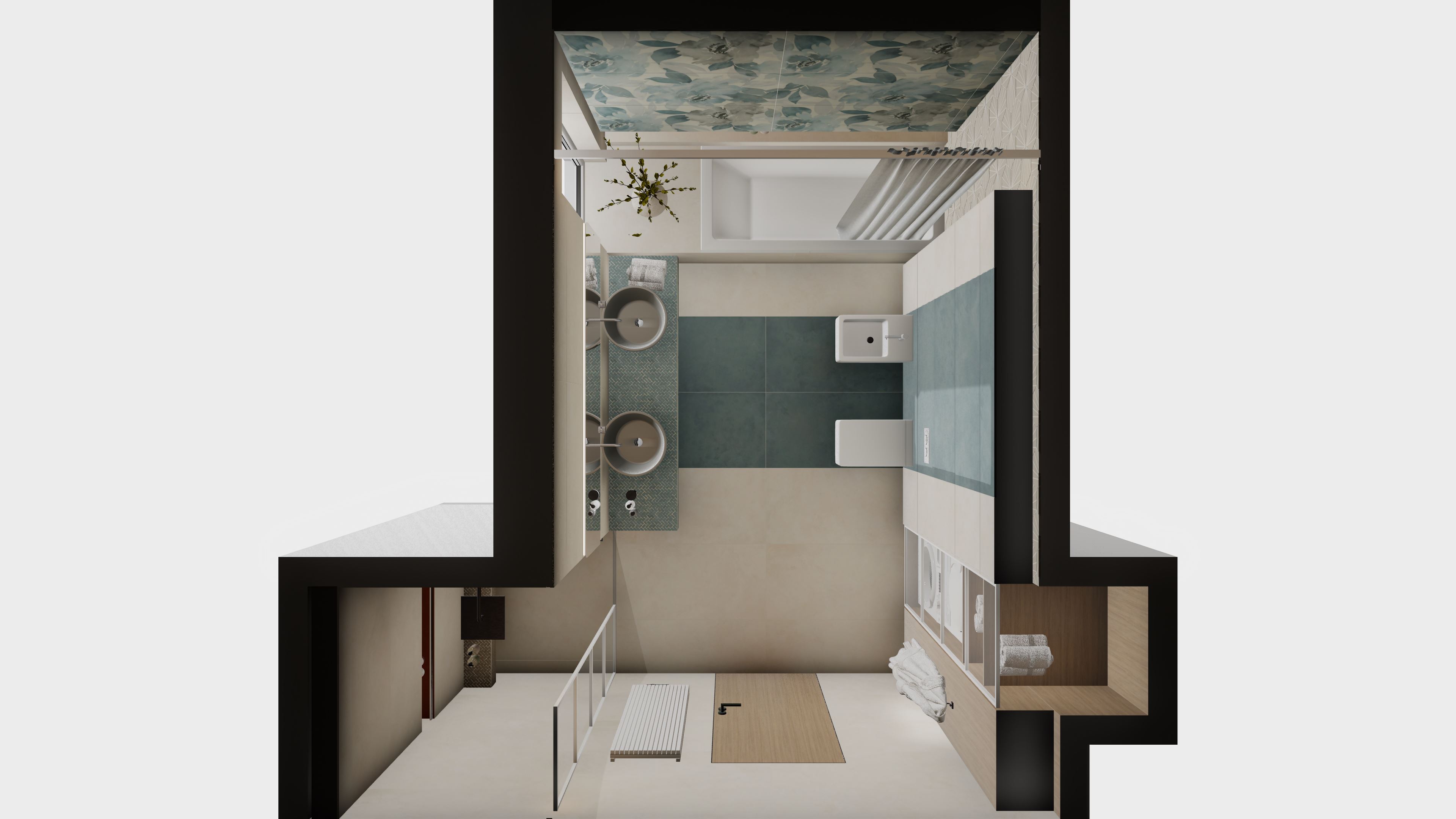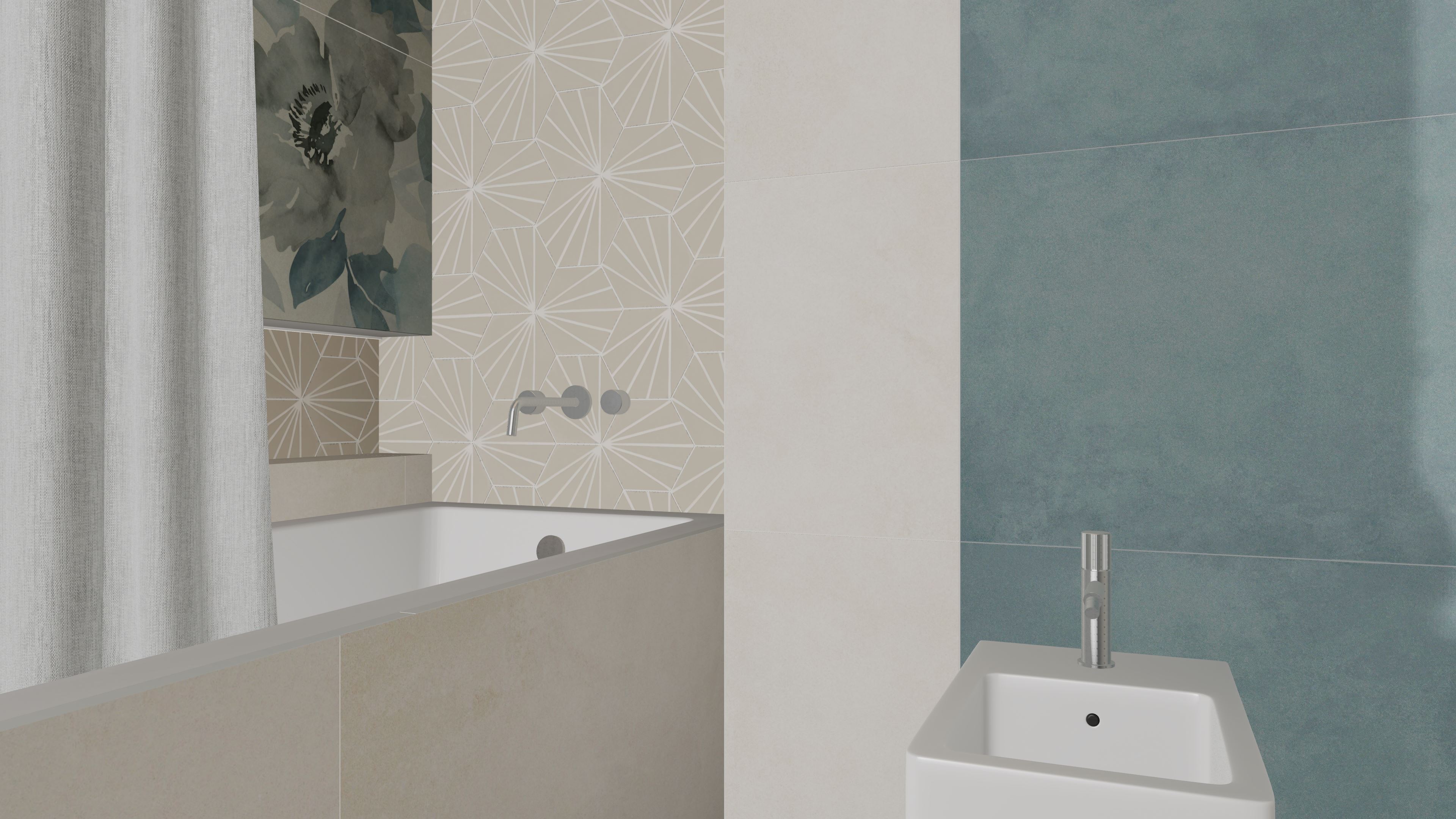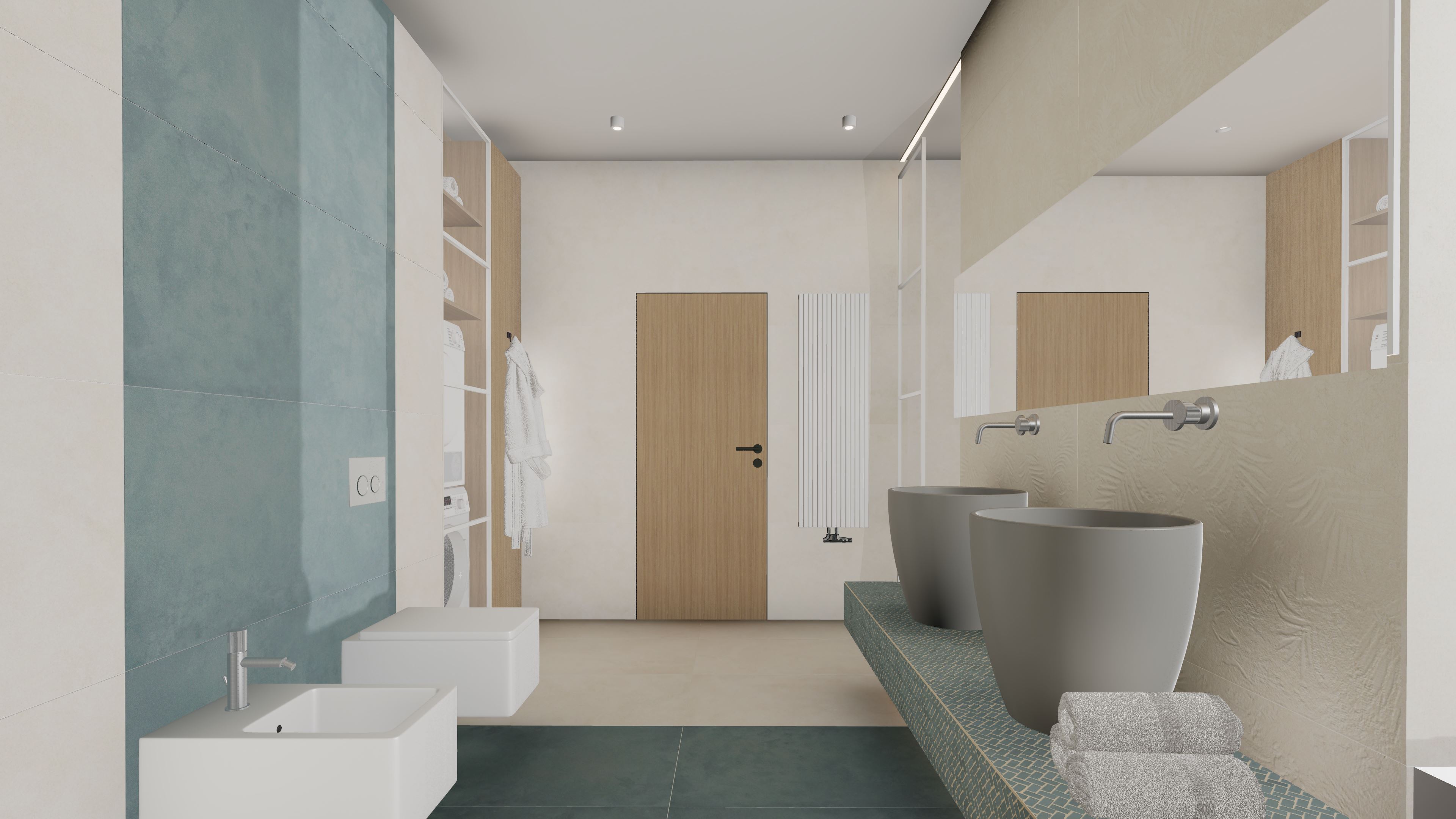 Фокусът е върху изчистени линии, балансирана композиция и хармония между меки тонове и контрастни декоративни елементи.