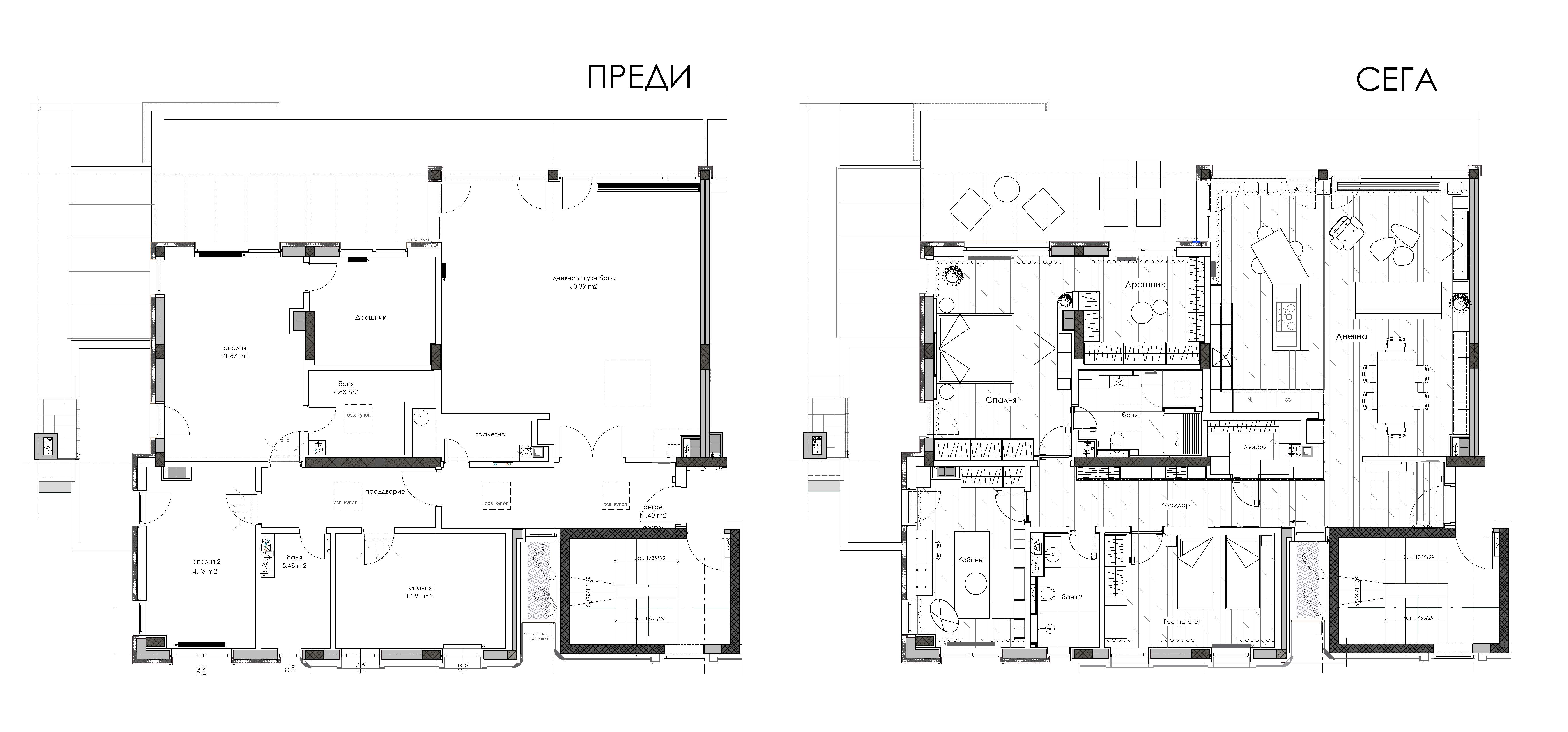 Целта беше да се създаде пространство, което не само отговаря на изискванията и същността на клиента, но и допълва даденостите на имота, осигурявайки усещане за простор и светлина.