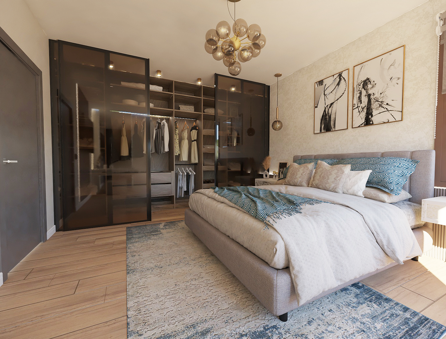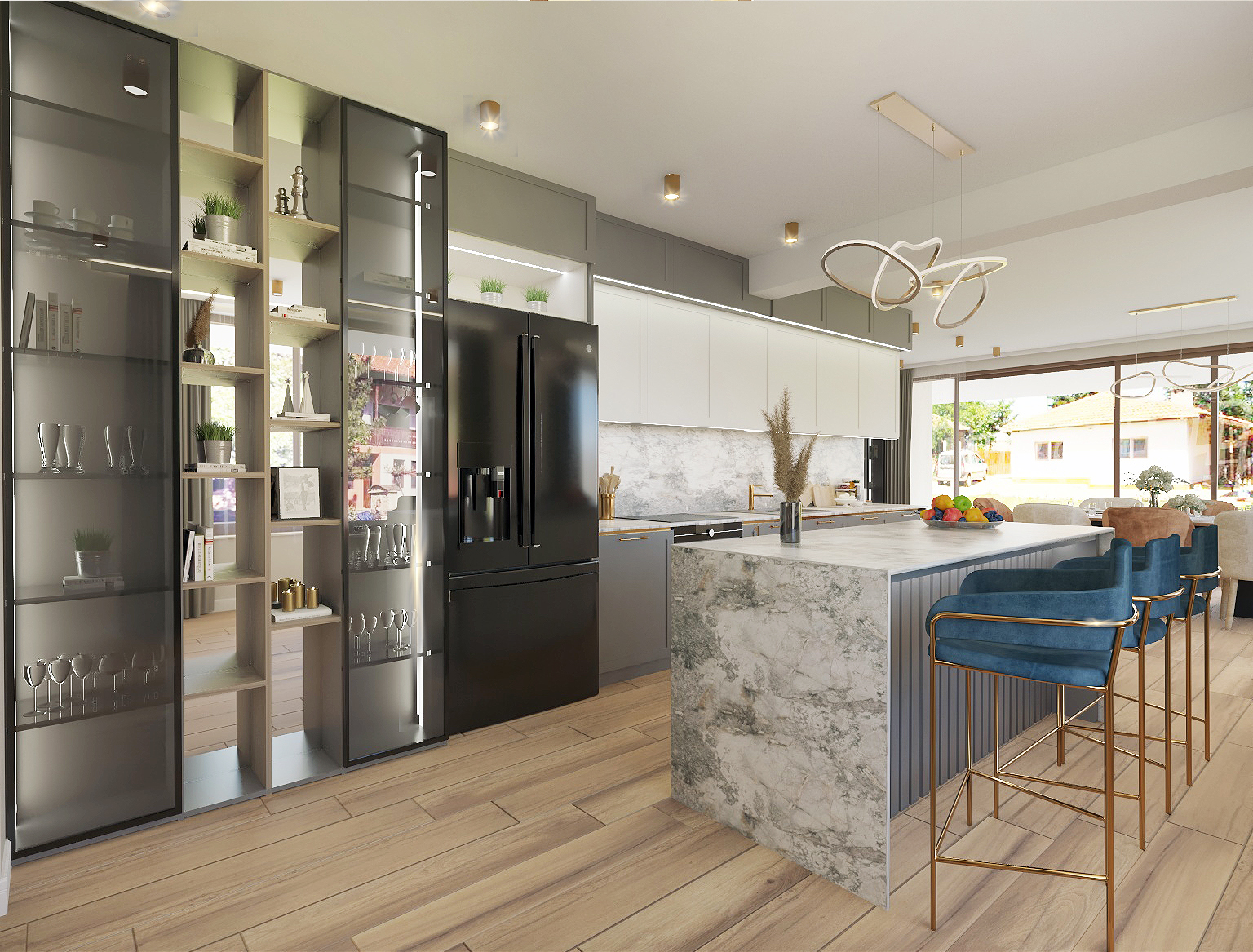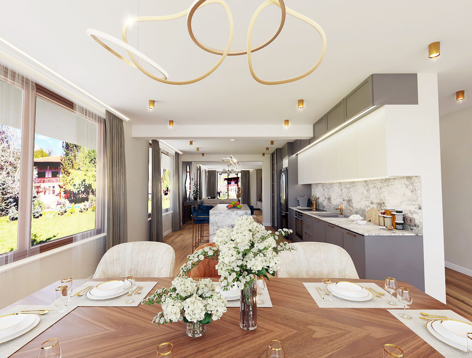 ✨ Домът, в който стилът среща уюта ✨ Добре дошли в пространството, където всяка зона разказва история – от елегантната кухня с мраморен остров и златни акценти, през светлата и уютна дневна с текстури и цветове, до спалнята, която прегръща с мекота и изисканост.Този интериор е не просто красиво подреден – той е създаден с внимание към детайла, хармония и усещане за дом.